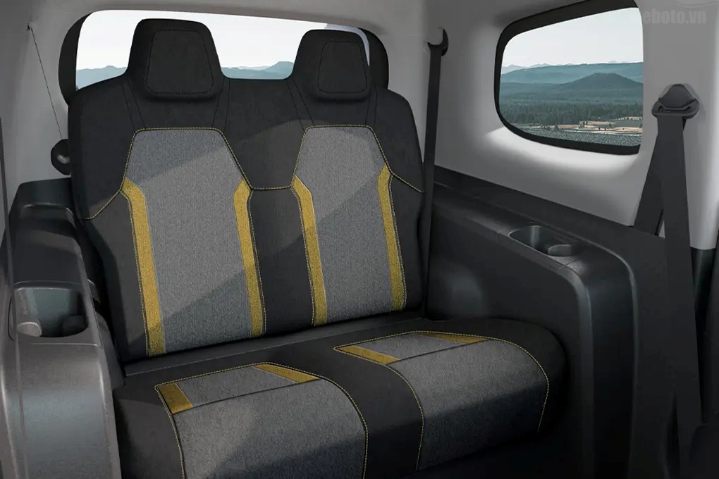 - Thiết kế tối giản, phù hợp cho dịch vụ vận tải. Ghế nỉ màu xám với điểm nhấn vàng hoặc xanh.
